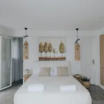 Mymykonos Villa I features a sunny patio with views of the sea as well as an outdoor pool. Offering Wi-Fi, this 3-bedroom beachfront villa is located about a 10-minute drive from Rarity Gallery.